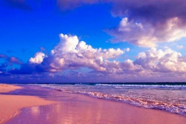 This picture shows a pink beach island Harbor. This is truly the most beautiful beach in the world. And all because of a combination of sand of pink pearl and crystal clear ocean water.