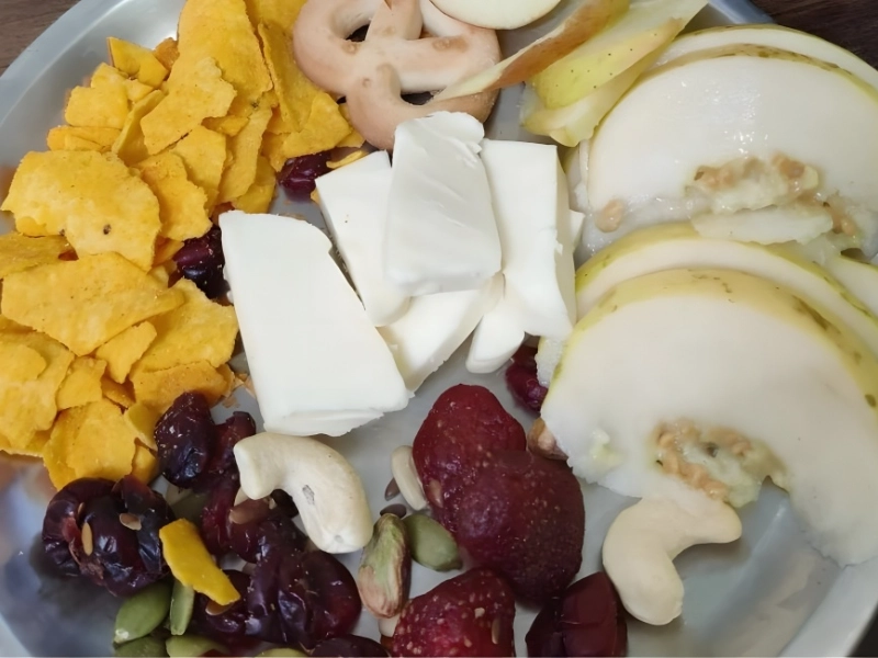 This individual may have thought of the same thing, but their execution was not that great. The board has a few plainly sliced cheese pieces, some stale-looking Doritos, and some terribly sliced fruit. We could have forgiven this charcuterie board if the problem had only been with the cheese, but as it stands, the entire thing is beyond repair.