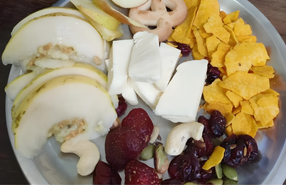 This person might have had the same idea in their mind, but the execution was relatively poor. The board consists of a few purely cut pieces of cheese, badly sliced fruit, and some dry-looking pieces of Doritos. If the issue was just with the cheese, we could have made peace with it, but every bit of this charcuterie board makes it irredeemable.