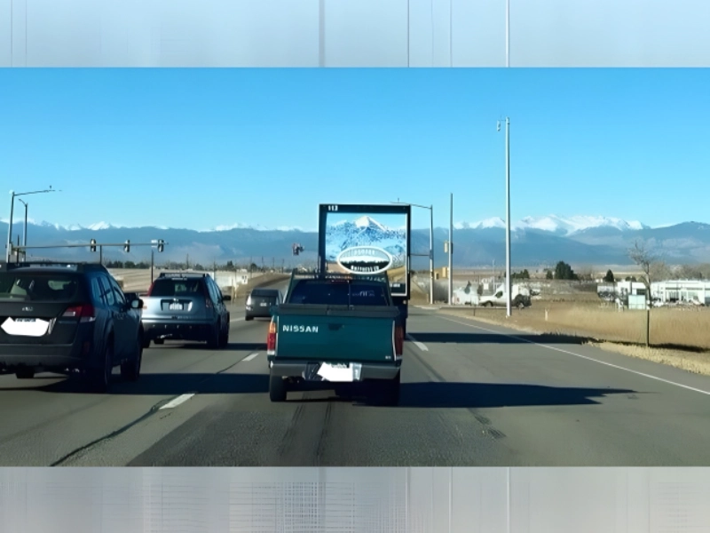 We suppose that you have to just be in the right place at the right time for this one, but the photo of the Rocky Mountains on the truck line up perfectly with the actual Rocky Mountains. Even the snowcapped part of the mountain looks like it belongs there. Someone could probably photoshop this image to remove the border around the back of the truck, and you’d have a hard time telling the difference.