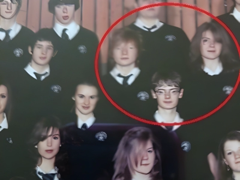 It’s kind of hard to look at this photo and not think that there’s some wonderous wizardry going on here. The three kids in this photo look strikingly similar to Harry, Hermione, and Ron from Harry Potter. However, there’s actually a pretty famous celebrity and musician among the three in this photo. The redhead in the photo is actually Ed Sheeran when he was younger. We’re not sure who the other two are.