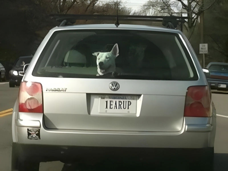 We’re not sure if the driver with the “1EARUP” tag purposely bought their plate like that because of their dog or not. However, it’s still kind of wild that the dog just happened to be looking out the back window with one ear up when this person noticed and snapped a photo. The dog is also pretty adorable with its one ear, so we had to add this one to the list.
