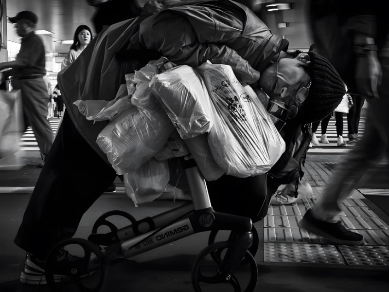 Expense: $800 * Ash Shinya Kawaoto, whose photo “The city needs people,” became a finalist in LensCulture. The black-and-white image showed a sleepy man bending over a grocery cart. People are strolling around him, stepping around his misplaced glasses as if he doesn’t exist.