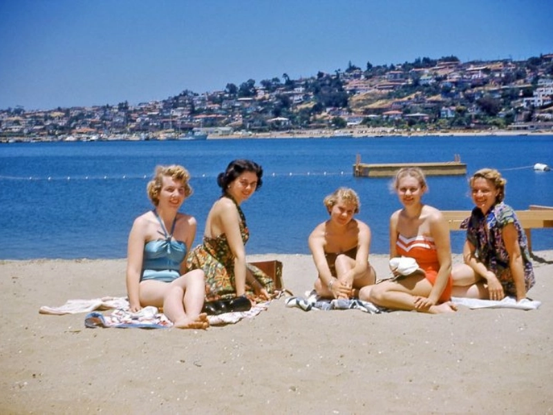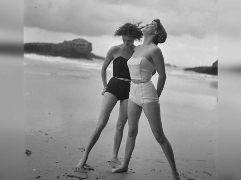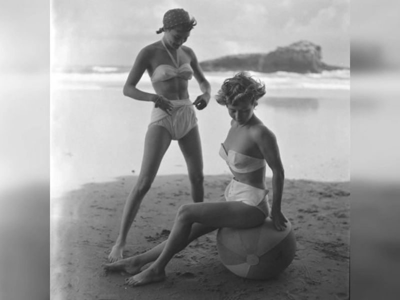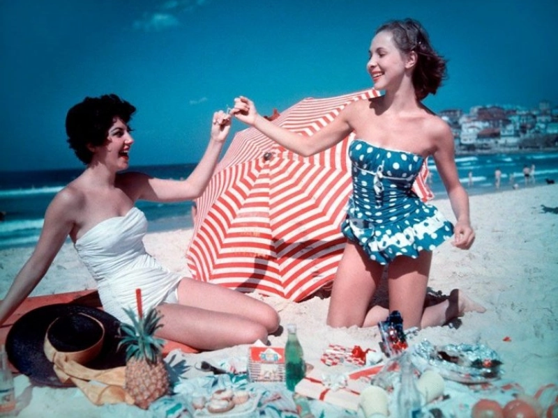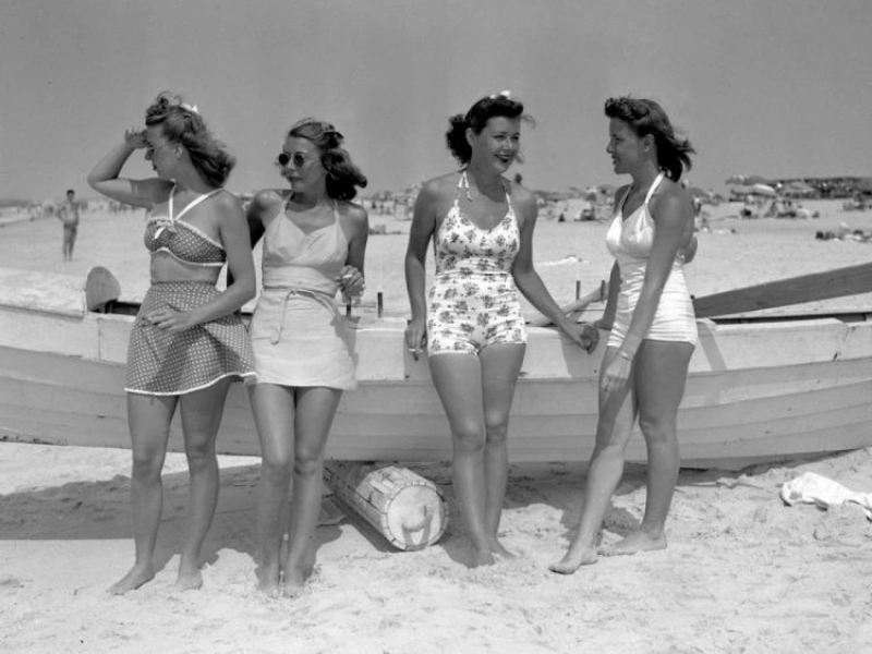 The 1950s beach fashion was just getting started, hehe.