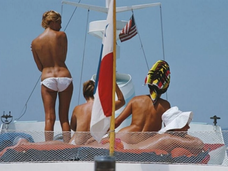 On a yacht, audacious beauty relaxes.