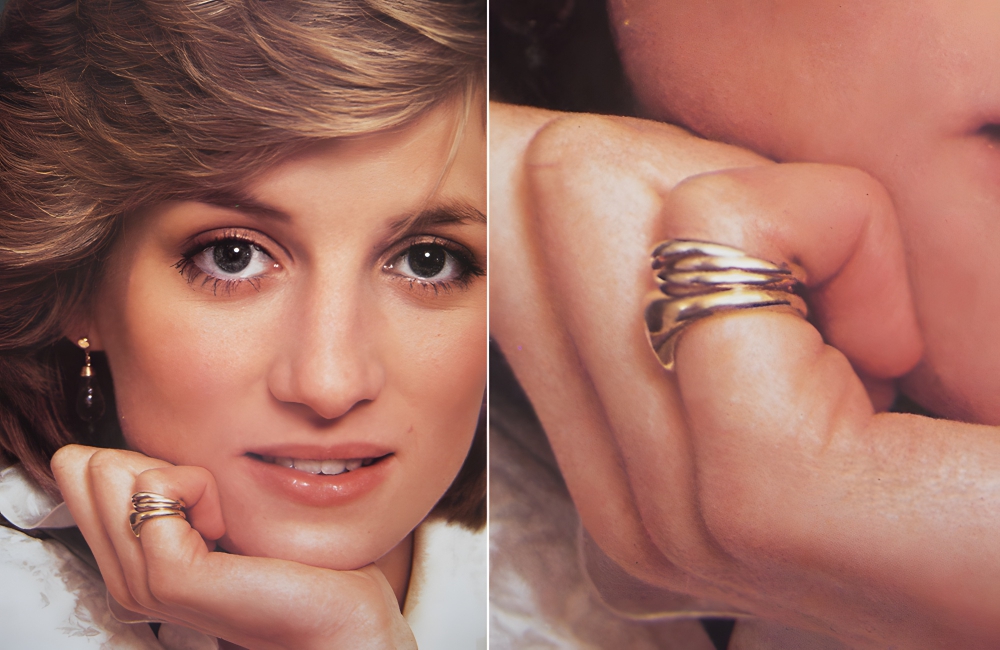 Princess Diana possessed a lot of rings, and almost all of them had different stones. She wore rings with emeralds, aquamarine, diamonds, and more. In 1983, the Princess wore a trinity and signet ring by Cartier at a photoshoot with Tim Graham in Kensington Palace. The ring had the Prince of Wales’ feathers, as the signet was a gift to Diana before the wedding.
