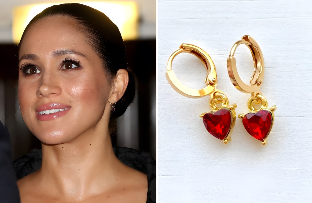 Ruby Heart Huggie Earrings – Meghan Markle @dailymail/Pinterest | ©etsy.com