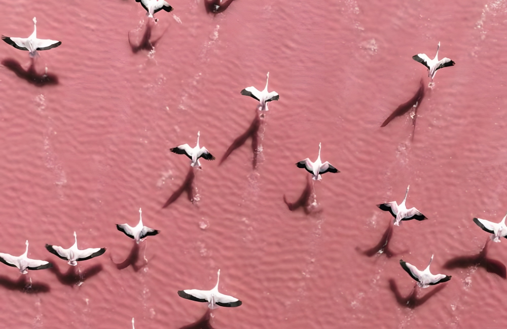Flamingos Flying Over Laguna Colorada, Bolivia ©Abstract Aerial Art/Getty Images