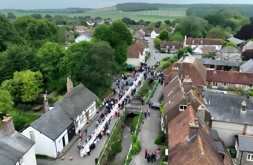 There were plenty of gatherings held to mark the occasion, including this one in East Meon, a Hampshire village. A drone caught the gathering set in the quaint location, making for a very English photo that is charming and historical.