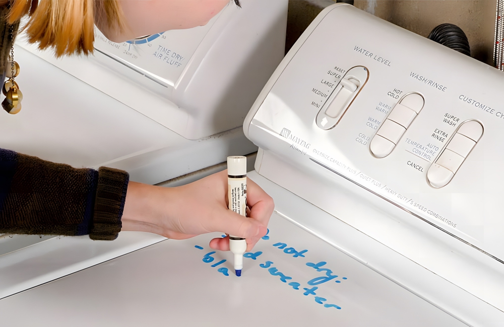 Your washing machine lid isn’t just a way to seal up your launderer to clean your clothes. It also can be used as a dry erase board. The surface is able to handle dry erase markers, though you’ll want to try out the marker on a tiny section of the washing machine first to make sure it fully erases.