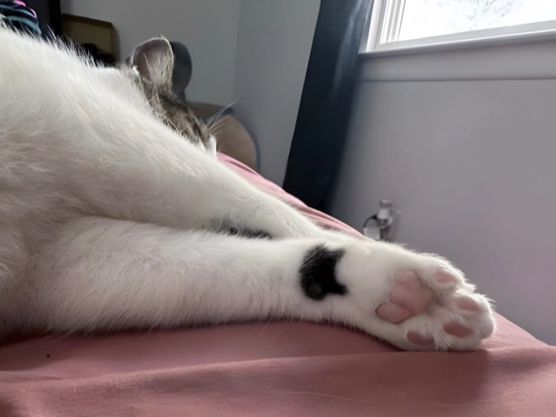 Their pet appears to have a tattoo of another small cat on their palm. This is a fantastic tattoo design, and if we had a cat that also got a similar tattoo, we would definitely get a matching one. The idea of matching tattoos with a pet is both whimsical and endearing, creating a special bond between the owner and their furry friend. If you were a cat lover, you could also just acquire something comparable. Many cat enthusiasts might be inspired by this unique marking to get a tattoo that celebrates their love for their feline companions. The image serves as a reminder of the deep connections people can form with their pets and the ways in which they choose to express that affection.