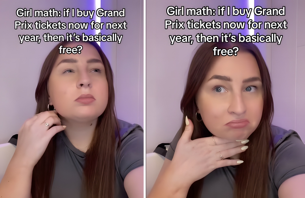 “If I buy Grand Prix tickets now for next year, then [they’re] basically free.” Using girl math, @letschatf1podcast took the “basically free” GM catchphrase to a new level. The proposition here is that buying something ahead of time cuts its costs.