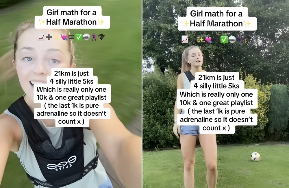 Want to run a half-marathon, but feel intimidated by the distance? Honestly, don’t even worry about it, as girl math is here to help. Technically, a 21km distance is just four quick little 5Ks, says TikToker and runner @laurenclarke132.