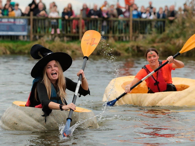 Pumpkin racing is a peculiar sport that started in the USA and quickly became well-liked by people who enjoy extreme sports. It’s a vibrant spectacle for onlookers, and it requires athletes to have exceptional balance and agility in the water.