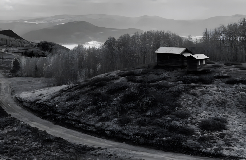 This picture may strike a chord of nostalgia with many of us because it resembles the house we all grew up seeing in Courage The Cowardly Dog. The black-and-white filter further emphasizes the dramatic composition of the image.