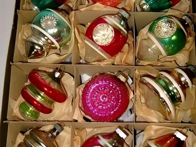 Although most people buy fresh Christmas ornaments every year, consider this picture as inspiration to adorn your tree with old Christmas ornaments this year! Perhaps your attic holds some of these older decorations. Most families, after all, included them. Their brittle cardboard box reflected the designs, which meant most families had a similar-looking tree when you were younger.