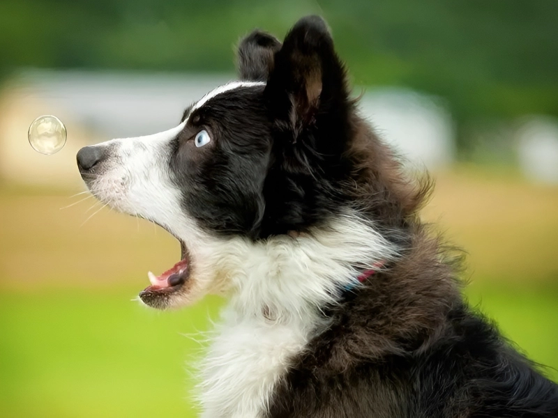 Pour ce chien, le plus étonnant, c’est une bulle de savon.