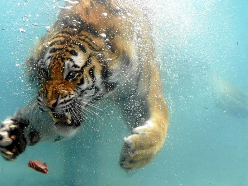 Un tigre ne laisse pas échapper un petit morceau de viande.