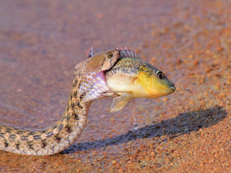 Le poisson semble prêt à mordre le crocodile.
