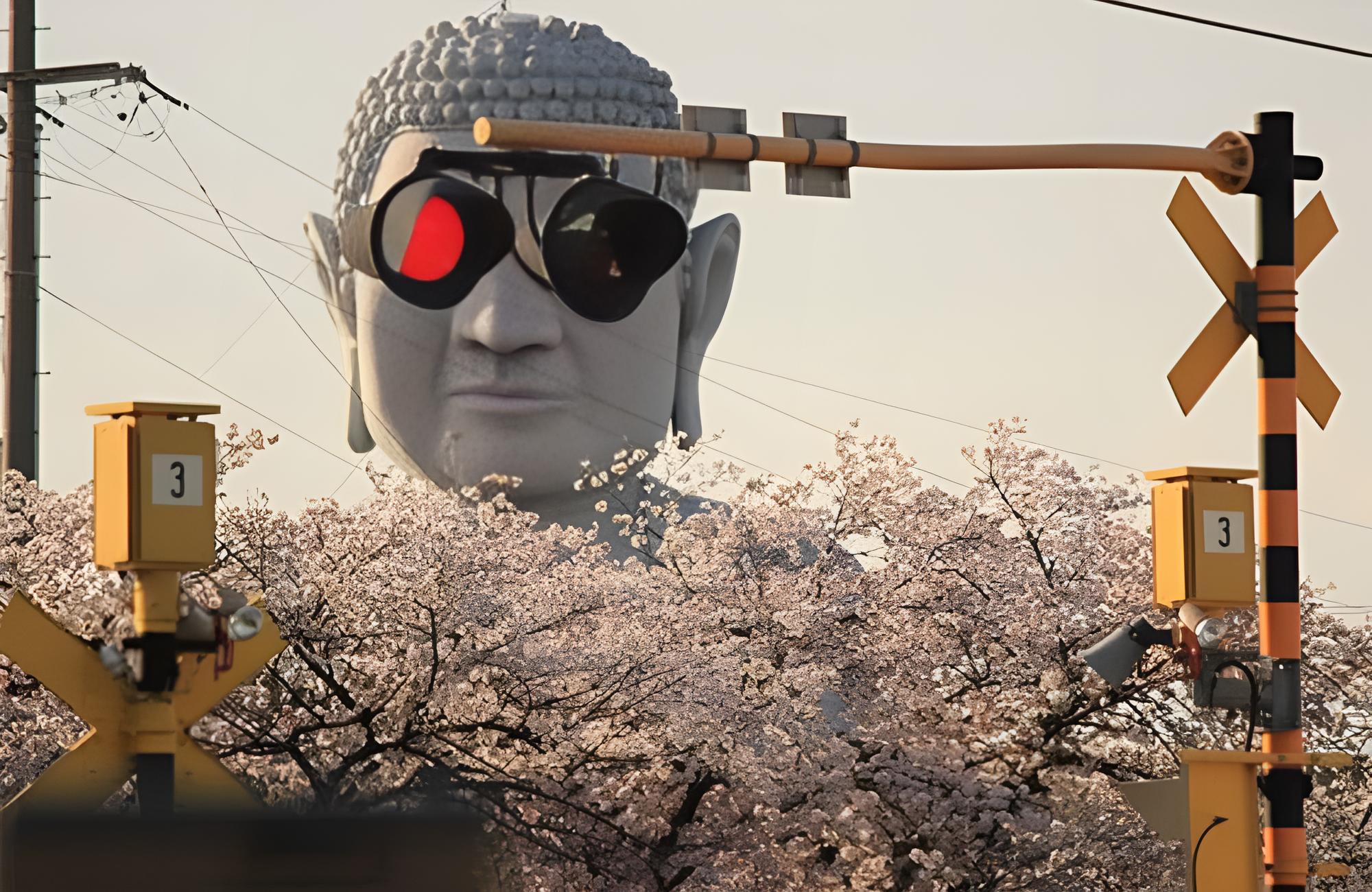 Such is the case of the unknown individual who clicked this picture, amalgamating ancient civilizations with the Gen Z pop culture of round, broad sunglasses. The sunglasses are actually road safety lights, and the statue is actually several miles behind the lights but at a perfect angle. The beautiful cherry blossoms add to the scenery, making it a sight to behold.