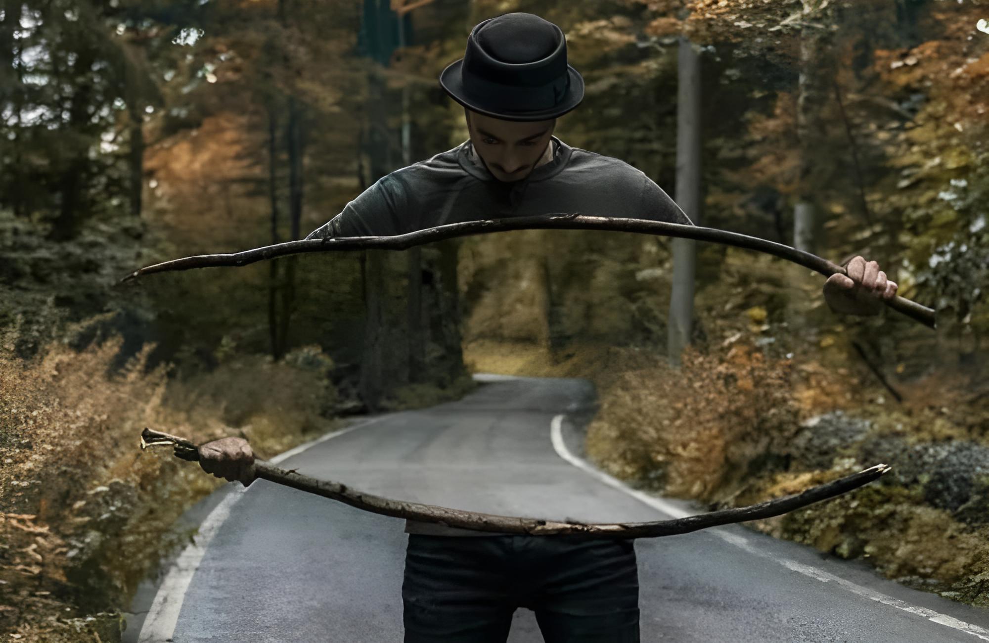 The torso in the woods may sound scary, but it is actually quite aesthetically pleasing if you look closely. The man in the frame is not cut in half, nor did he use Photoshop to add a picture of the woods between his body frame. The man is holding a long mirror, and the woods you can see are actually the reflection of the trees in front of him.