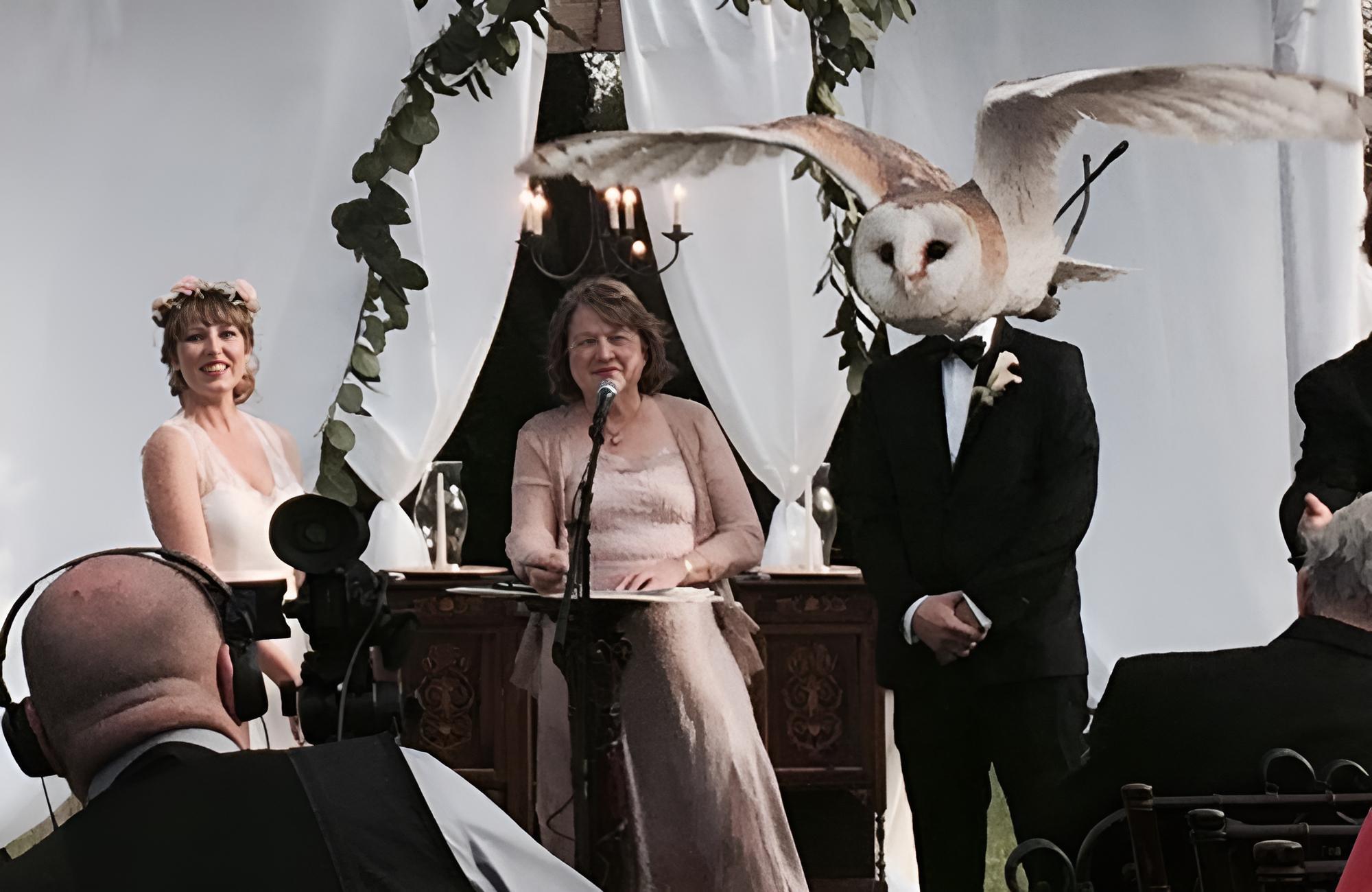 Imagine yourself getting married. Sounds gleeful, right? But what if you look through your pictures and find out you married an owl man instead? A truly wonderful surprise indeed. That is exactly how the woman in this picture must’ve felt, and we can’t even begin to decipher the groom’s feelings.