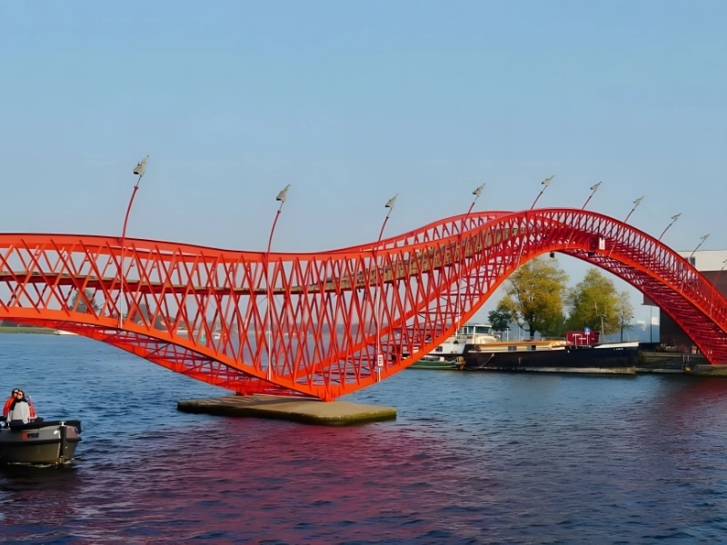 The Python Bridge is well-known for having bike-friendly facilities, including designated lanes for both bicycles and pedestrians. As a result, it’s a well-liked route for travelers and commuters who want to explore Amsterdam’s energetic neighborhoods. The Python Bridge captivates onlookers with its elegant movement as it opens and shuts like a snake, granting access to boats that are passing.