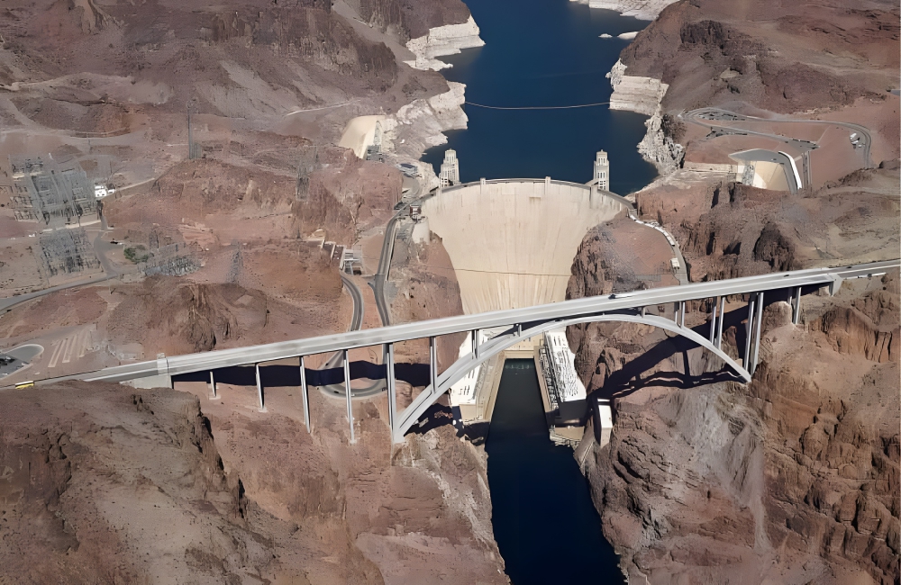 Hovering over the Colorado River, the Pat Tillman Memorial Bridge, established in 2010 at a cost of $240 million, serves as a monumental bypass for the Hoover Dam. This arch bridge is notable for its engineering and aesthetic qualities, offering unparalleled views of the dam and the surrounding desert landscape.