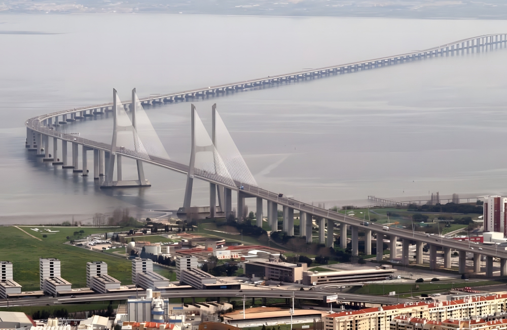 The Vasco da Gama Bridge, stretching gracefully across the Tagus River in Lisbon, Portugal, stands as a monumental testament to modern engineering and design. Established in 1998 at a cost of approximately $900 million, this bridge was inaugurated to alleviate traffic congestion and to commemorate the 500th anniversary of Vasco da Gama’s discovery of the sea route to India.