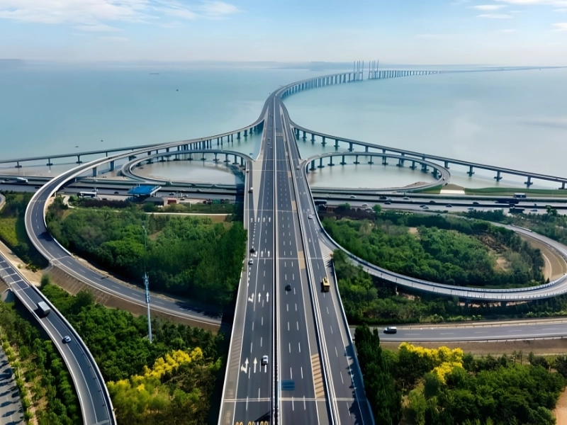 The Jiaozhou Bay Bridge, which cost $1.5 billion, has greatly lowered travel times and traffic, promoting regional economic development. Almost 450,000 tons of steel, or the weight of 72 Eiffel Towers, were needed to build the bridge, making it one of the biggest steel constructions ever constructed.