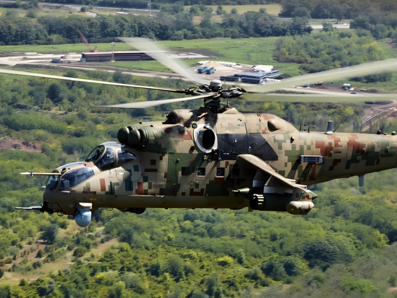 The Mil MI-24, known by its NATO reporting name “Hind,” is partially modeled after American gunships and helicopters from the Vietnam War. Most of these gunships and helicopters were produced by Vought, Boeing, and Lockheed Martin. The Hind was designed by Mikhail Mil.
