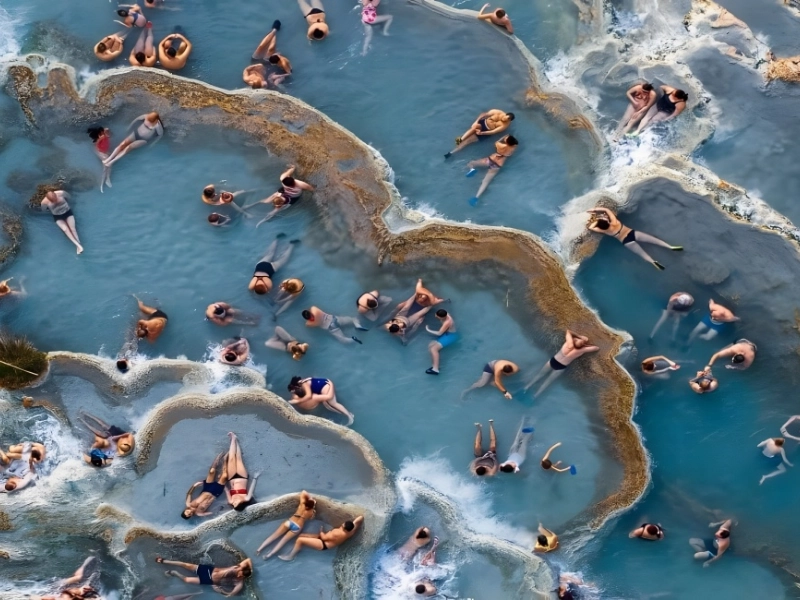 The thermal waters are heated by a neighboring volcano and have a silky blue color. One of the most breathtaking natural beauties in Tuscany is this. The Typhoon H Plus, a $2,600 drone that is best suited for seasoned drone operators, might have been used to take this picture.
