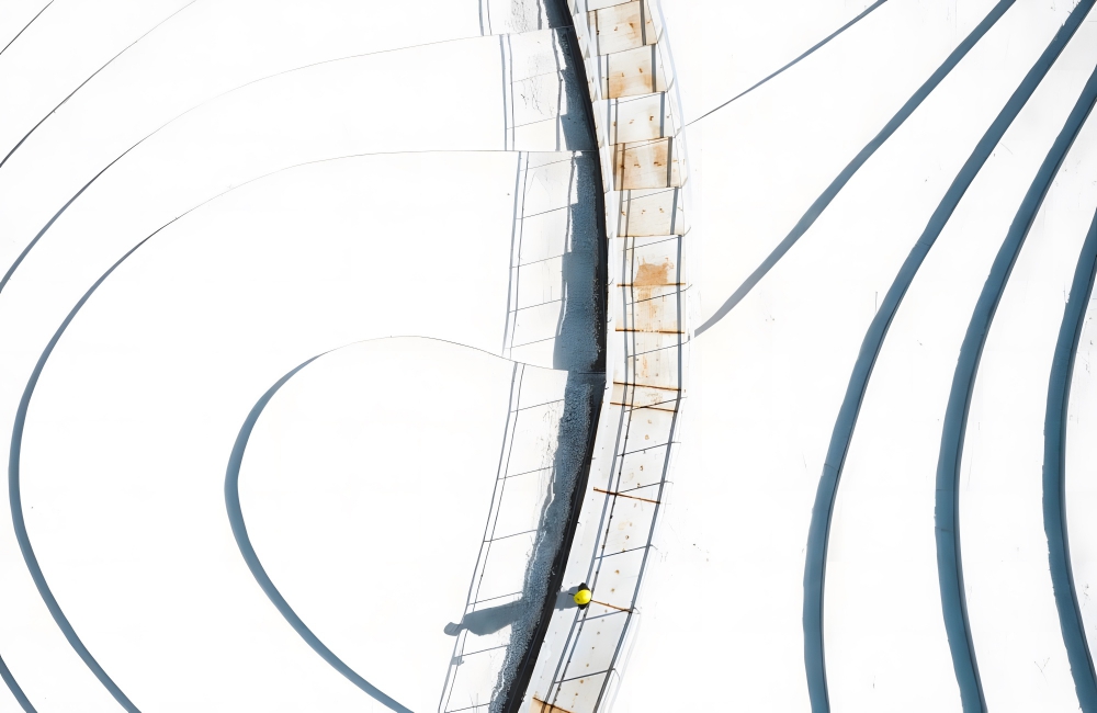 The abstract picture takes an entirely new look at Hubei, China’s landlocked province full of mountains, lakes, wilderness, and urban areas. The population of Hubei is 58.5 million, and the Central China province’s cities can be crowded, making them a stark contrast to this bare-bones photo.