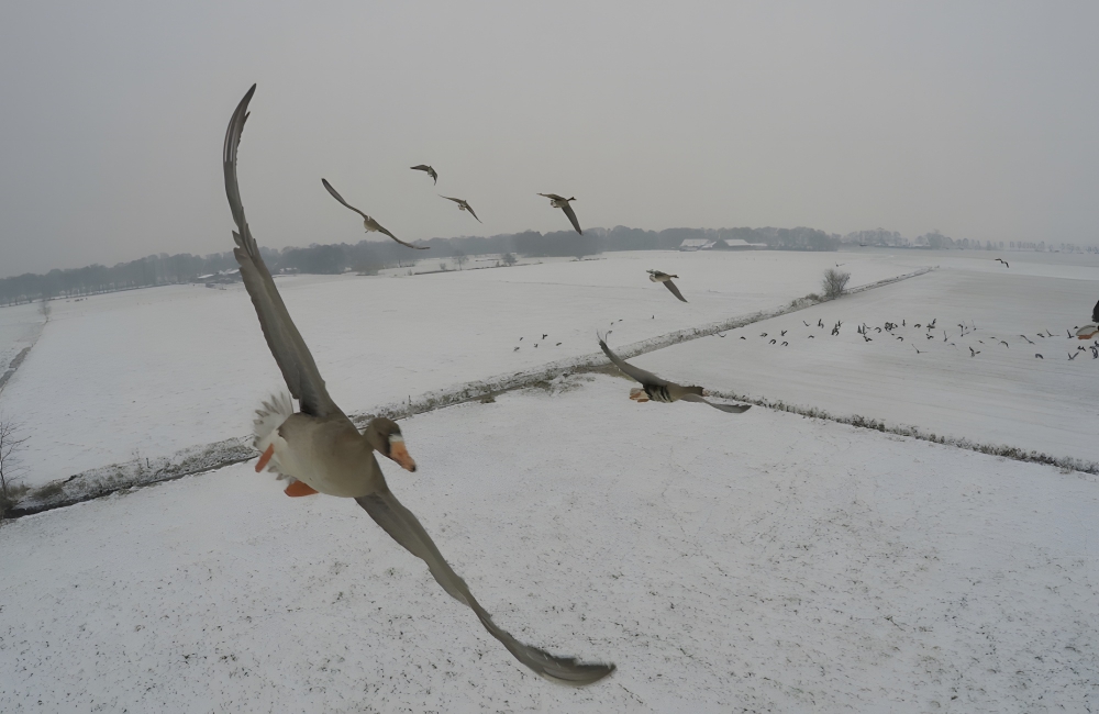 GLF Media snapped this photo of geese migrating through white, snowy terrain. A potential drone used to capture this photo could have been the DJI Air 2S, which is known for its intense exposure sensitivity. You can snag this drone at DJI.com for $999. TechRadar described the Air 2S as the “best drone for most people.”