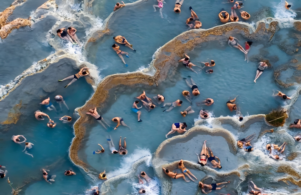 Christian Gatti submitted this photo to the 2021 Drone Photography Awards, and he won in the “People Commended” category. The photo, titled “Cascate del Mulino,” features tourists bathing in Saturnia, Tuscany’s natural thermal pools. Each tourist has their own relaxation position as they take in the benefits of the pools.