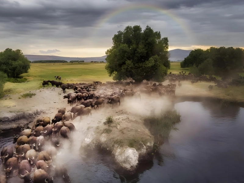 The picture has a captivating painting-like aspect due to the lovely rainbow that is included in it. Turkey is where the picture was taken. A million water buffaloes lived in Turkey in the 1970s, but due to wetland degradation, by 2010, there were just 85,000 left. The MJX Bugs 3 Pro is among the greatest drones for taking pictures of nature like this one.
