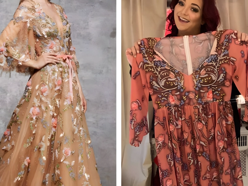 However, the substance that the AliExpress version is printed on isn’t worth it. Although there is little similarity in appearance between these two gowns, is it really that surprising given how little they cost? You have to give these customers credit; they’re steadfast believers who simply won’t be persuaded to shop online.