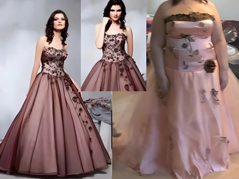 This gown could be ideal for some people because of its voluminous skirt and unique color combination of brown and dusky rose. It’s perfect for prom since it has just the right amount of personality and detail to make it stand out from the crowd. Unfortunately, other websites, like Dressty, have plagiarized the hard work of original designer Veromia.