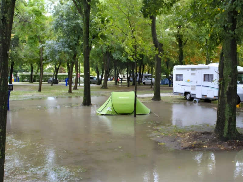 when a nighttime light rain fell. This apparently benign comment most likely relates to a camping situation that went unanticipated. Imagine a bunch of campers curled tightly in their tents drifting off to sleep under a starry bright night sky. Nature, though, had other ideas. In the early hours, the campsite was covered in a light rain shower almost discernible to the sleeping guests. Come dawn; the naive guests see their surrounds changed. The once-dry ground is now a mosaic of puddles; their gear is damp; the air is heavy with humidity. This picture most likely shows the aftermath: tents drooping from gathered rain, shoes left outside now damp, and maybe a few startled faces as campers examine the situation. It reminds us of the volatility of nature and the need of always being ready even if the forecast seems to be clear. The picture probably makes one feel a range of emotions: annoyance at the unanticipated moisture, delight at the irony of the circumstances, and maybe adventure in overcoming this little difficulty.