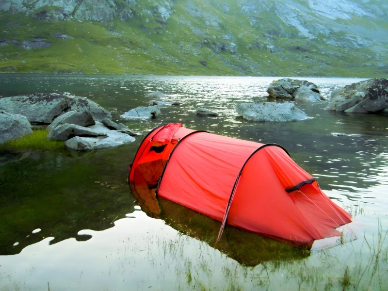 Not a great place to erect the tent alongside the river. This caption probably goes with an image that graphically shows the dangers of bad campground choice. The picture can show a flooded tent, half buried in rising river floods, with its contents floating either inside or carried away by the torrent. Alternatively, it might depict a dramatic scenario of campers quickly moving their tent and equipment as the river approaches their selected location. This picture reminds me strongly of the need of giving the surroundings great thought when choosing where to set up camp, especially close to bodies of water whose change with the seasons is fast. It emphasises how erratic outdoor experiences are and how important it is for campers to be updated about possible hazards such flash floods. The picture probably makes viewers who have had near calls of their own feel both “there but for the grace of go I” and sorrow for the poor campers. This is a sobering story that emphasises the need of respect and readiness for exploration of environment, even in apparently perfect settings.