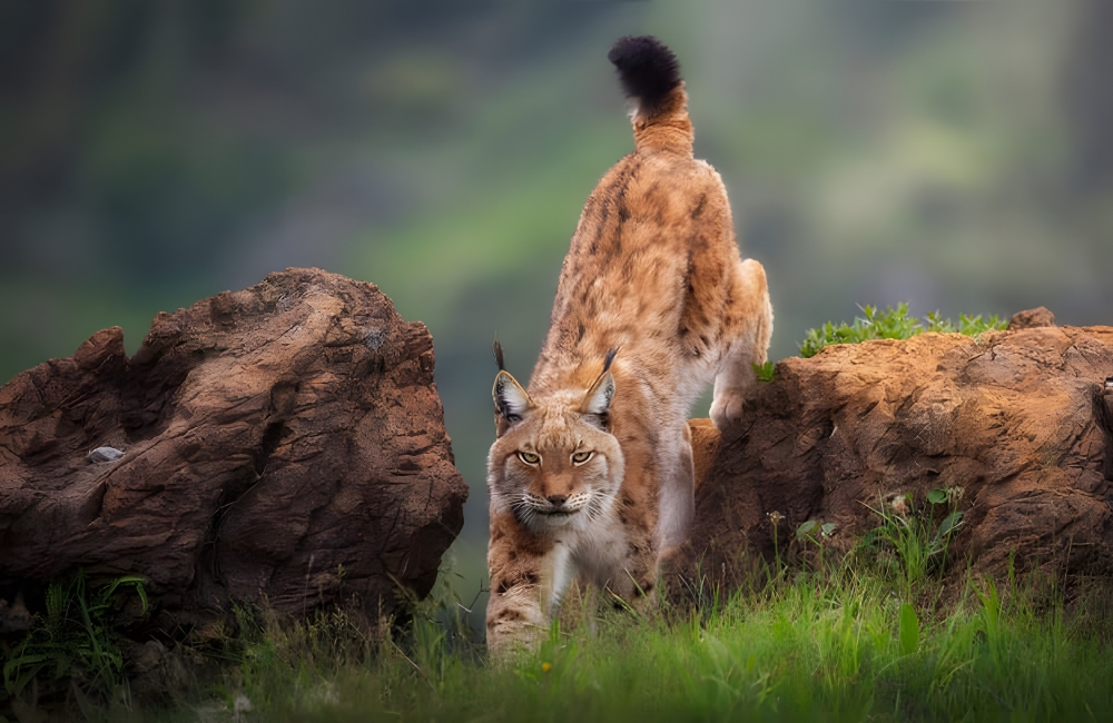 The camera possibly used for this sort of nature photography could have been the Canon EOS Rebel T7 DSLR Camera, which you can buy on Amazon for $559. This Canon can take clear, sharp photos, focusing on exactly what the artist wants: in this case, an annoyed—and hopefully not hungry—carnivorous lynx.