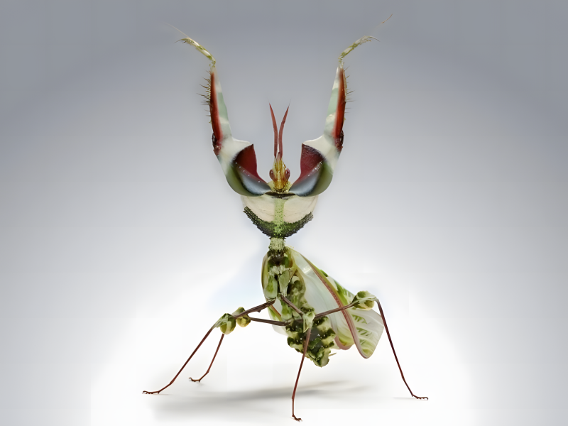 Scientists claim that this insect is among the most peculiar members of the praying mantis family. Female adults can reach a maximum length of thirteen centimetres. They have colours that are strikingly similar to orchid flowers.