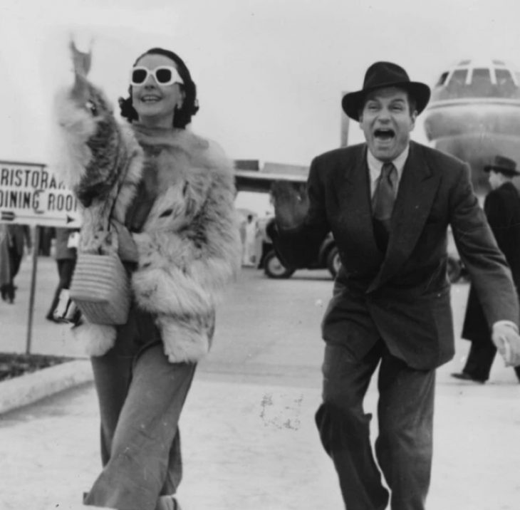 Vivien Leigh with her husband Sir Laurence Olivier at Rome airport, 1953.