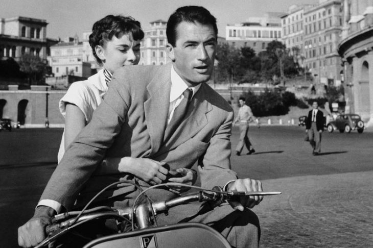 Gregory Peck and Audrey Hepburn. A scene from the movie “Roman Holiday”, 1953.