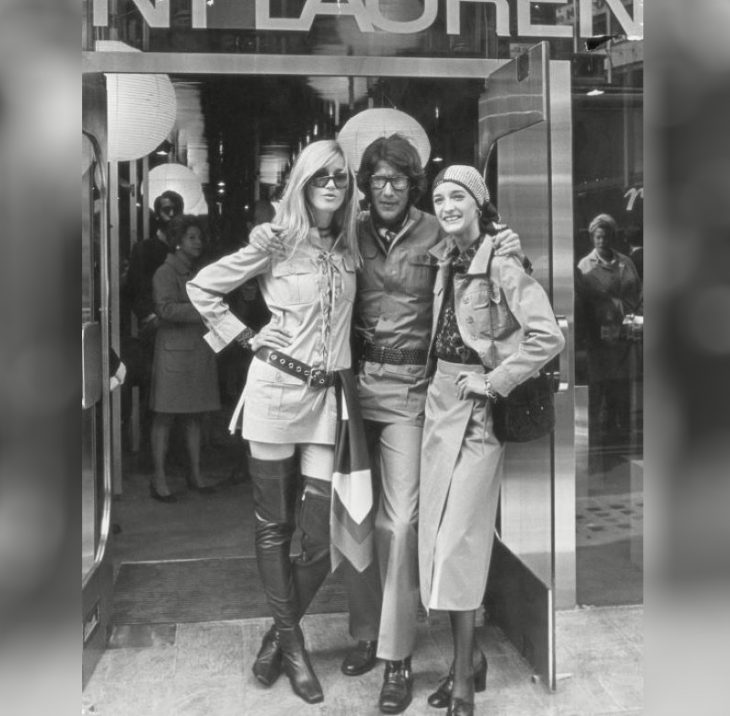 Betty Catru, Yves Saint Laurent and Lulu De La Falaise, 1969.