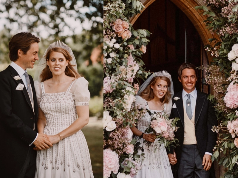 In July 2020, the pair exchanged vows at Windsor’s Church of All Saints. The ceremony was limited, with only about 15 family members and friends present because of COVID-19. The bride donned her bridal tiara and a Norman Hartnell dress that had already been worn by Queen Elizabeth.