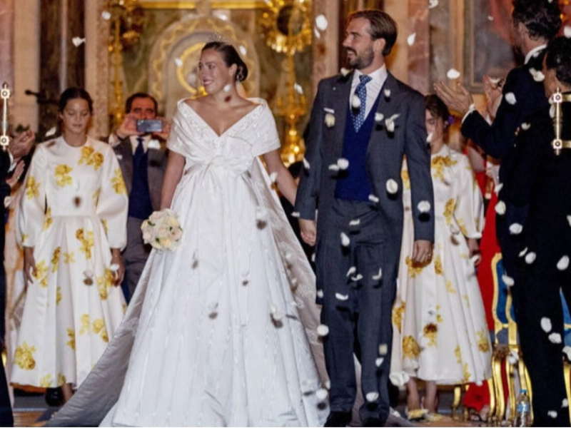 The groom is Princess Diana’s godson and the son of a Norwegian princess and a Greek king. The bride is a Swiss aircraft tycoon’s heiress. Athens hosted the wedding, which drew a large number of celebrities and members of royalty.
