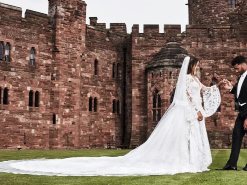 For their weddings, celebrities usually pick country estates and hotels. But singer Ciara and American football star Russell Wilson, her fiancé, made a unique choice when they rented Peckforton Castle in Cheshire, England. A stunning bride in an extravagant lace gown, a flowery arch at the altar, hundreds of candles, and a flower-adorned multitiered cake made the party resemble a fantasy.