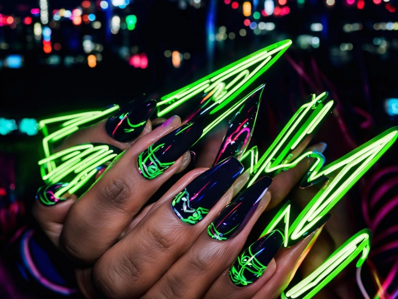 Adopted by stars such as Megan Thee Stallion and Nicki Minaj, neon and glow-in-the-dark nail art makes a striking statement day and night.Often using brilliant hues and unique UV-reactive finishes that produce an arresting impression under various lighting settings, these vivid designsIt is more flexible than ever as the tendency has developed to include complex patterns and combinations with various techniques.Though especially trendy during summer and festival season, for those looking to make a strong fashion statement these styles have become year-round choices.