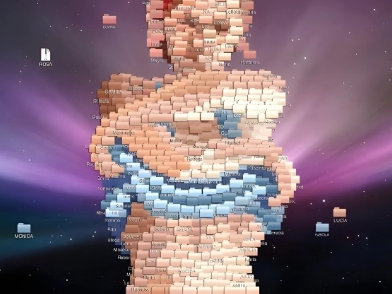 With great certainty, this person spends a lot of time fixed on the computer screen. The intricacy of the artwork most definitely points to a strong degree of computer knowledge and picture editing software familiarity. Still, the decision to call folders after certain girls is somewhat controversial. It objectifies women and points up a worrying trend of behaviour. This wallpaper reminds us that respect of people or emotional intelligence does not always follow from technical ability. It’s a clear illustration of how improper attitudes and personal prejudices could show themselves in apparently benign activities like desktop customising. This wallpaper should start conversations on appropriate behaviour, respect, and privacy in both online and real-world contacts.